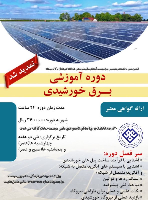 • دوره آموزشی برق خورشیدی