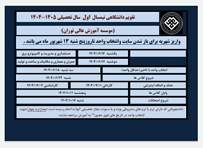 اطلاعیه مهم امتحانات بهمن ماه 1401 دانشگاه توران دامغان